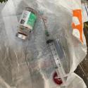 hospitalar — como agulhas, seringas, frascos de medicamentos e materiais usados